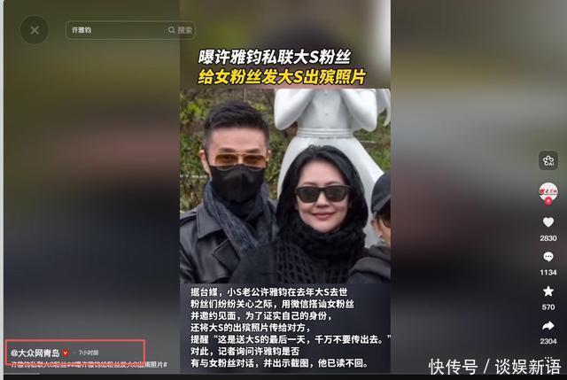 大S生前有多在乎体面,这家人如今就把体面摔得有多碎。 距离大s雕塑亮相还不满一月,小s老公再次曝出猛料。 为了约大S的女粉丝见面,直接甩出大S出殡当天的私密照片自证身份,还特意叮嘱人家千万别外传。 这样的操作把大S最后一点体面,撕得比纸还碎。 然而在网友的深扒之下,才发现许雅钧还做出过更加过分的事情。 在内娱这块地界上,要说谁家是真正的流量永动机,S家绝对稳坐头把交椅。 哪怕是在大S已经撒手人寰一年多的今天,只要冠上那个字母,热搜依旧能被搅得天翻地覆。 原本以为随着故人离去,那些长达数年的恩怨情仇也该尘归尘土归土,给逝者留下一份最后的宁静。 然而现实却总比八卦更魔幻,就在2026年3月的头几天,沉寂许久的S家再次深陷舆论漩涡。 这次的主角不是别人,正是那位一直游走在夜店风波边缘的姐夫许雅钧。 事情的导火索说来荒唐,近期,有网友在社交平台公开了一组聊天记录。 直指小S的老公许雅钧在网络上私聊年轻女粉丝。 如果只是普通的社交搭讪,大众或许只会感叹一句江山易改本性难移。 但截图中的细节却令人毛骨悚然。 为了证明自己的真实身份,并迅速博取对方的好感与信任。 许雅钧竟然随手甩出了一张2025年大S出殡时的私人视角现场照。 这种行为在第一时间引发了全网公愤,要知道,葬礼是一个家族最隐秘、最悲痛的时刻。 作为妹夫,他不仅没有对逝者保持起码的敬畏。 反而将亲人的葬礼作为自己猎艳的筹码和显摆的资本。 这种拿死人当敲门砖的社交套路,不仅亵渎了死者的尊严,更彻底撕碎了豪门所谓的体面。 那位女粉丝在收到照片后,由于虚荣心作祟,将其转发至粉丝群炫耀。 结果在人多眼杂的传播下,这张带着血色的入场券彻底出现在了公众视野中。 这种对自己亲属毫无底线的消费,简直刷新了大众对人性凉薄的认知。 回顾许雅钧这些年的行径,无论是常年被拍到在夜店与辣妹互动。 还是面对小S多次公开维护时的沉默,他似乎总能在一地鸡毛中全身而退。 但这次,事情闹大后他的第一反应却充满了心虚的愤怒。 据悉,在私联截图曝光后,许雅钧并没有表现出对家人的愧疚。 而是第一时间怒斥该女粉丝,并将其迅速拉黑。 这种翻脸不认人的做法,非但没能平息舆论。 反而坐实了他撩妹时的肆无忌惮与事后的极端傲慢。 更有意思的是,小S在这场风波中的处境依然尴尬。 过去面对老公的种种绯闻,她总是用我们相爱、信任最重要”这种话术来粉饰太平。 但在2026年的今天,面对丈夫亵渎亲姐姐葬礼的行为。 如果她依然选择视而不见,那这份用尊严换来的婚姻,真的还值得大众同情吗? S家这些年积累的路人缘,或许正随着这些荒诞的行为一点点耗尽。 在这场猛料中,最让人惋惜的莫过于大S。 生前轰轰烈烈,死后竟也无法清净。早前曾有传闻称汪小菲包机护送骨灰。 虽然S家人辟谣称是小S夫妇出钱操办,但如今看来。 所谓的出钱出力在亵渎死者的行为面前,显得如此廉价且讽刺。 资本是逐利的,娱乐圈的眼球更是极其冷血的。 在这些名利场玩家眼中,似乎亲人的离去、家族的悲剧,都能被转化为社交场合上的谈资。 大S去世一年多,本该安息,却硬生生成了妹夫手机里的一张身份标签。 这种悲哀,恐怕是任何豪门光环都无法弥补的。 S家的故事,在2026年的春天写下了最讽刺的一笔。 许雅钧的这次翻车,不仅是他个人的品行危机。 更是一面照妖镜,照出了那个被流量和虚荣心裹挟的怪诞圈子。 当一个人连对生命的敬畏和对亲情的底线都能随意抛弃时。 无论他身处何种高位,最终都只会沦为世人的笑柄。 面对丈夫如此亵渎亲人的行为,小S是会继续选择那个所谓的幸福幻象。 还是终于能够擦亮双眼看清枕边人的真面目? 这种毫无底线的流量狂欢,到底什么时候才能真正收场。